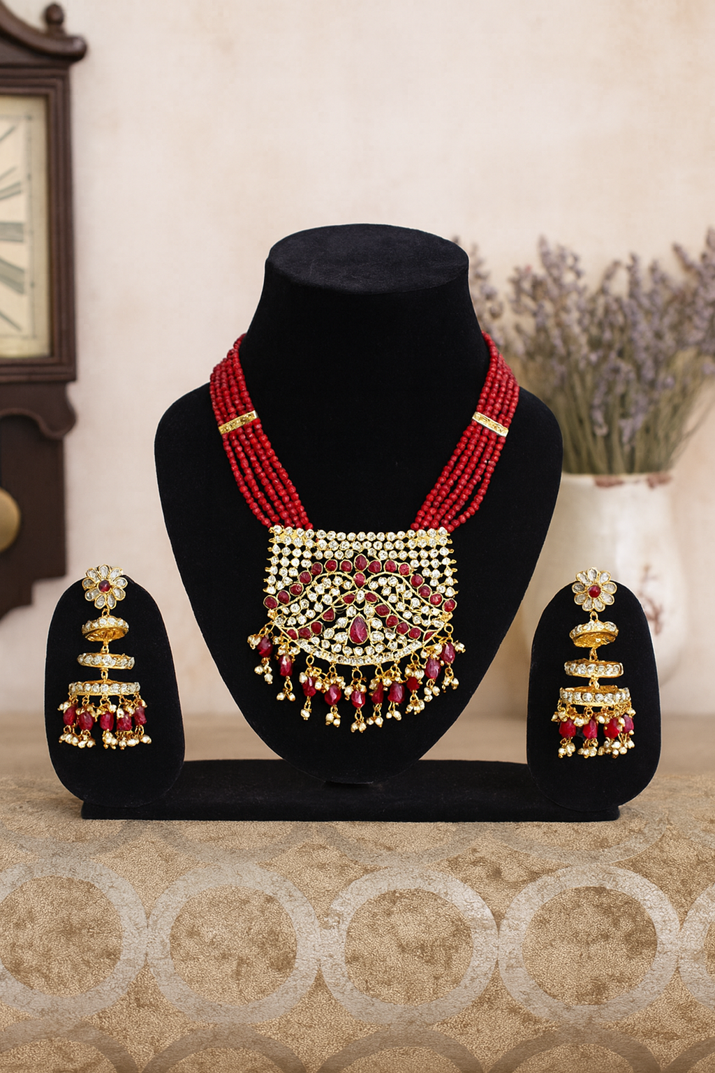 Red Beaded Traditional Wedding Necklace for women.
