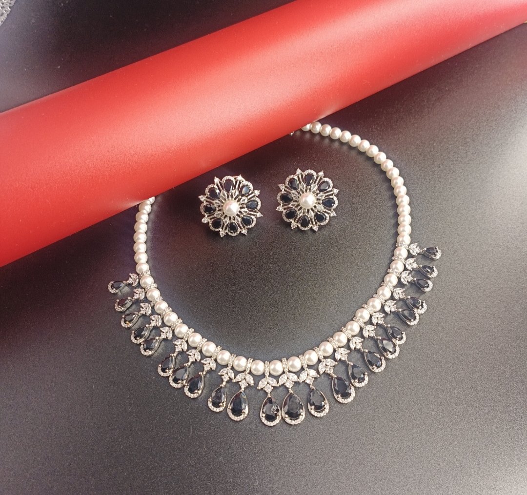 A classy pearl and black stone necklace set designed to add elegance to any outfit—perfect for parties and festive wear.