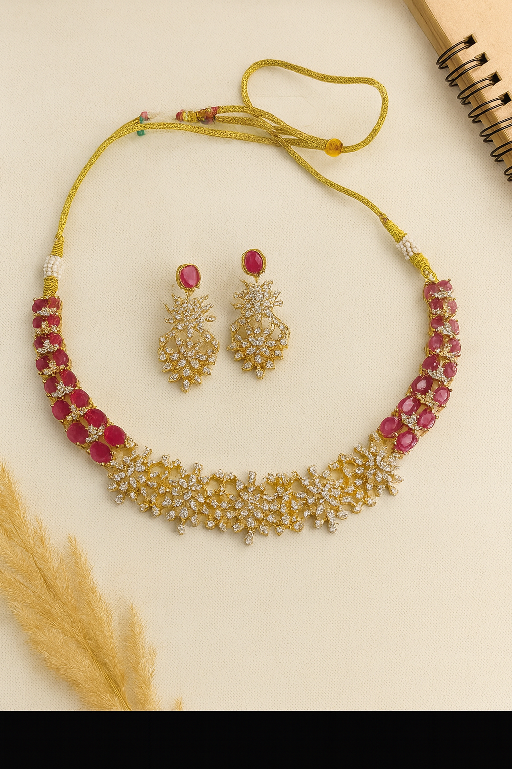 👑 Elegant Ruby Stone Necklace with Earrings.