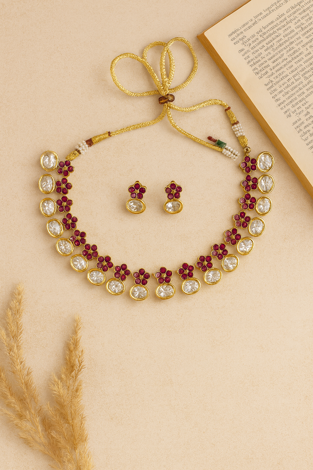 Elegant kundan necklace set with premium polish, giving a rich ethnic look.