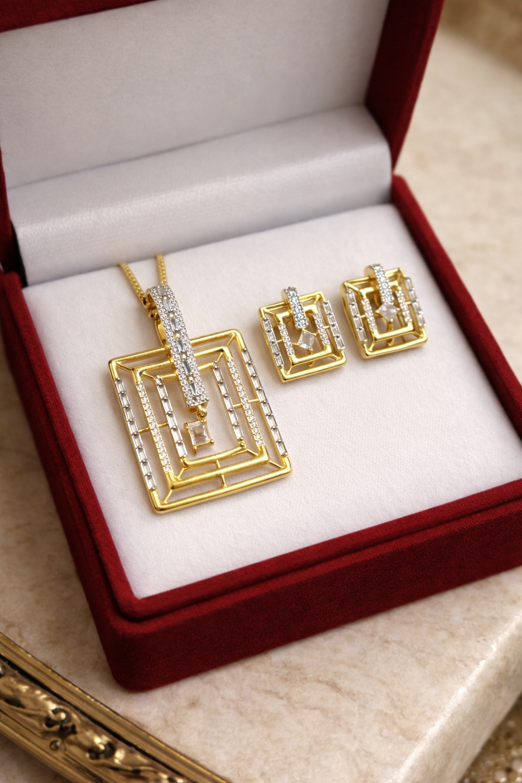 Elegant Square Gold AD Pendant Set for women.