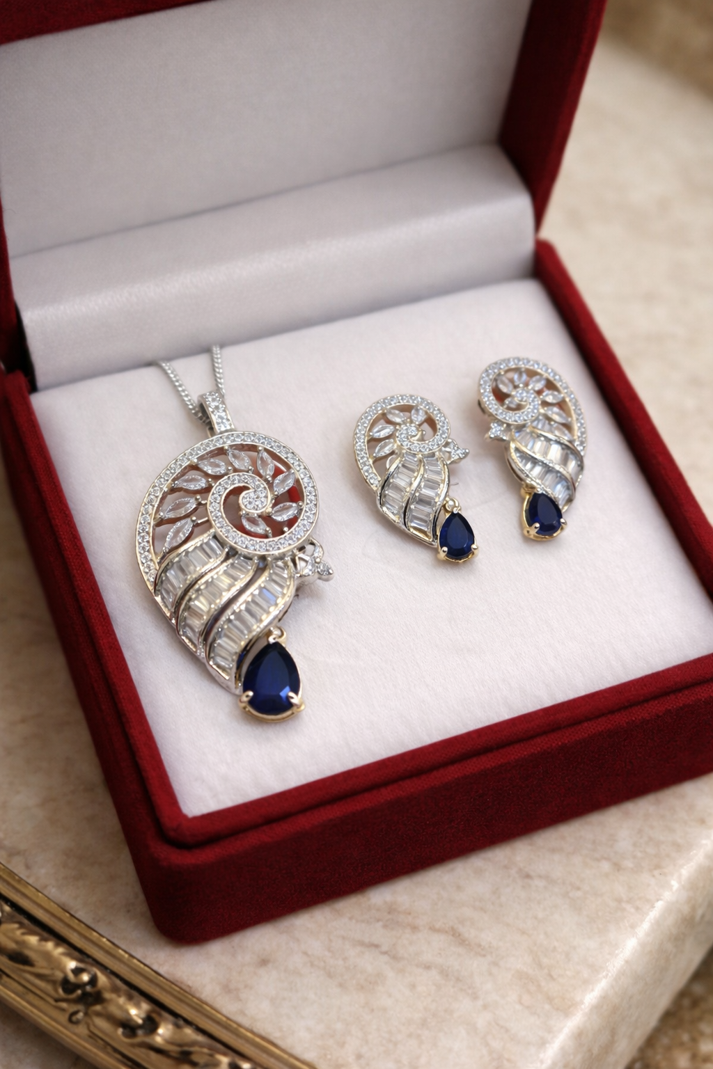 Be the first to review “Designer Blue Stone AD Silver Polish Pendant Set.” Cancel reply