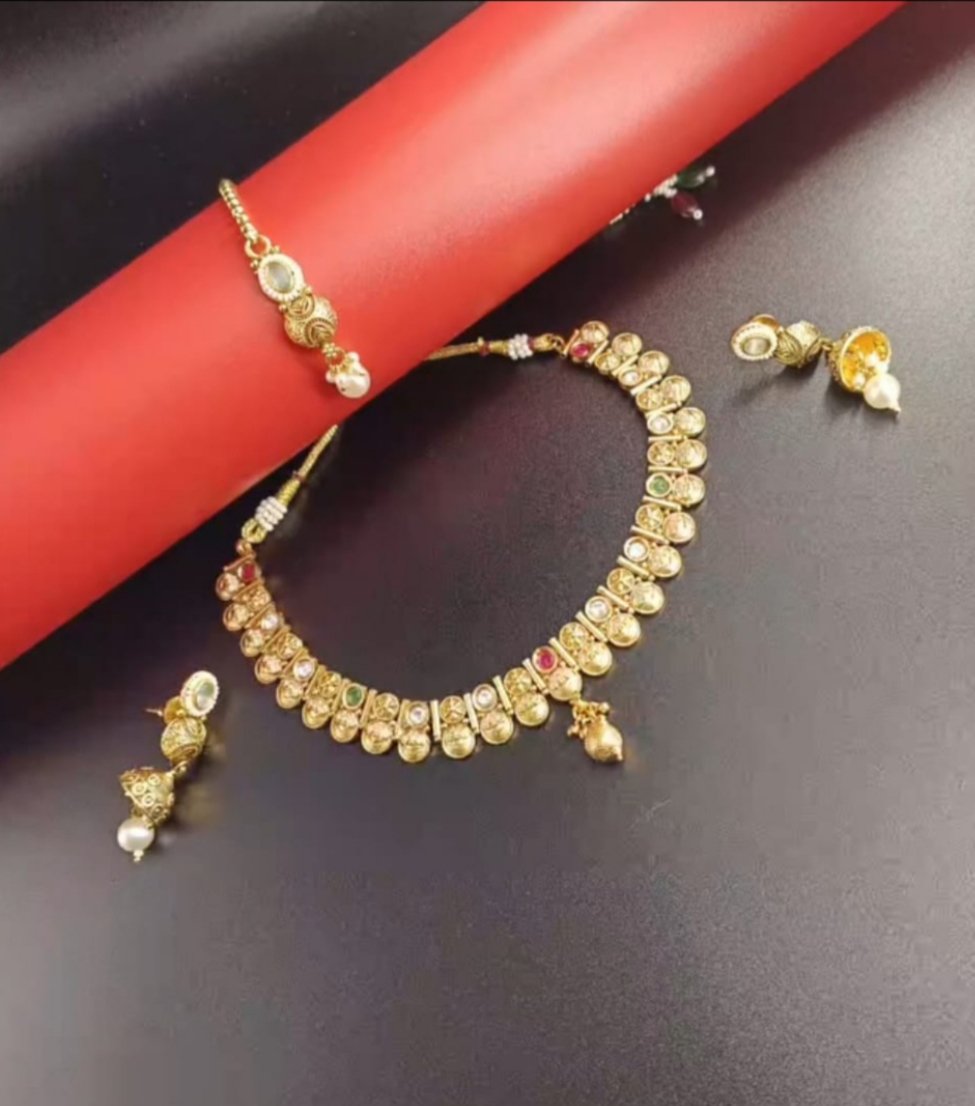 Jewellery set for women gold plated kundan necklace with earrings.