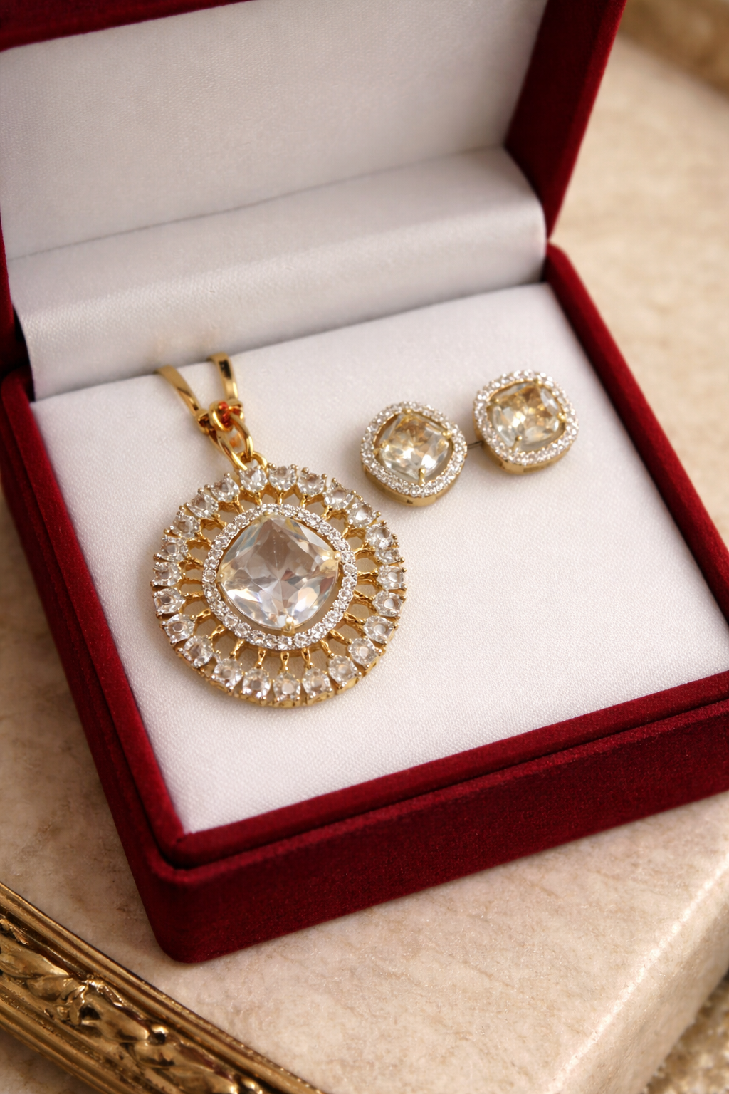 Golden Royal Grid Pendant Set ✨