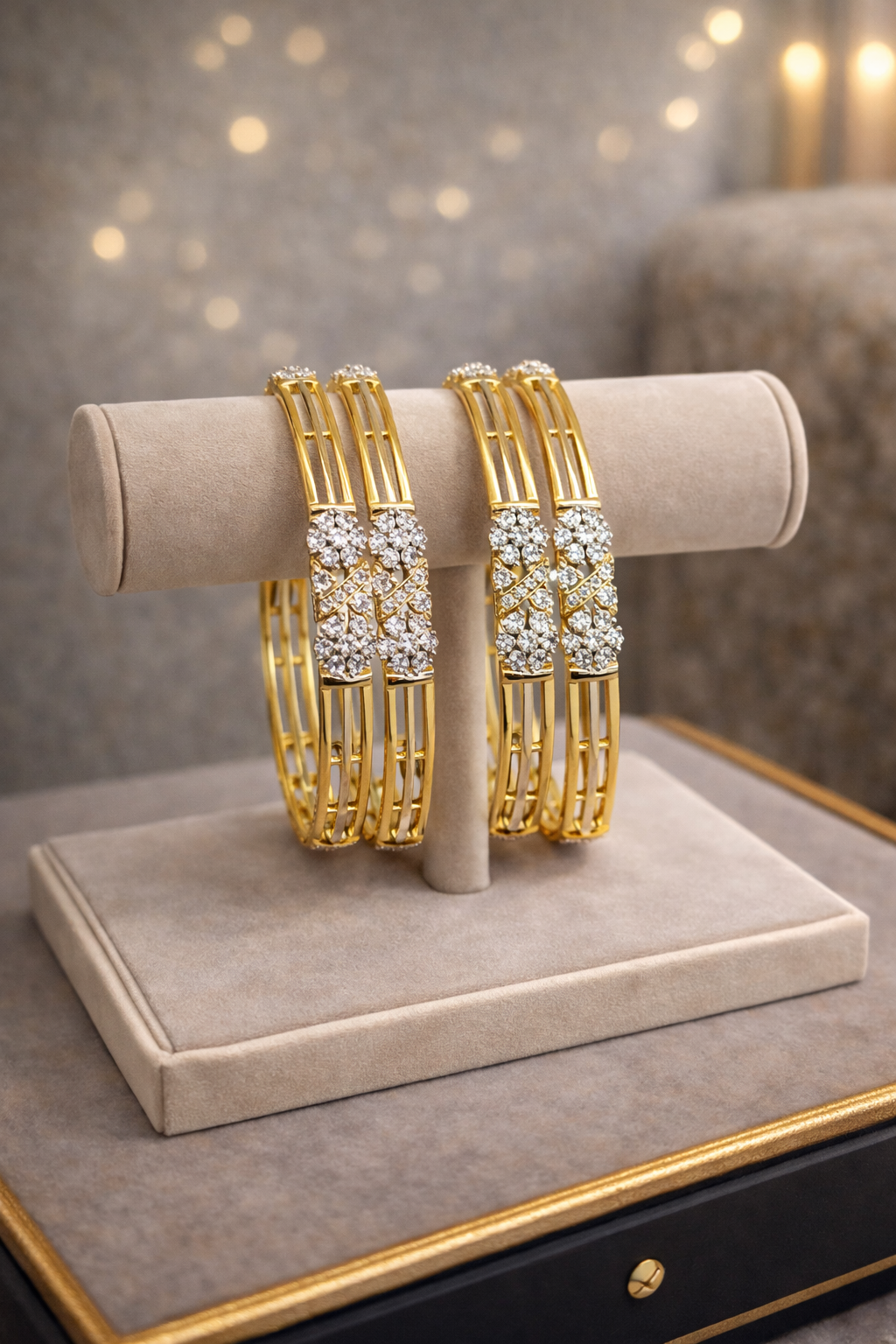 Luxury Diamond Finish Gold Bangles for women.