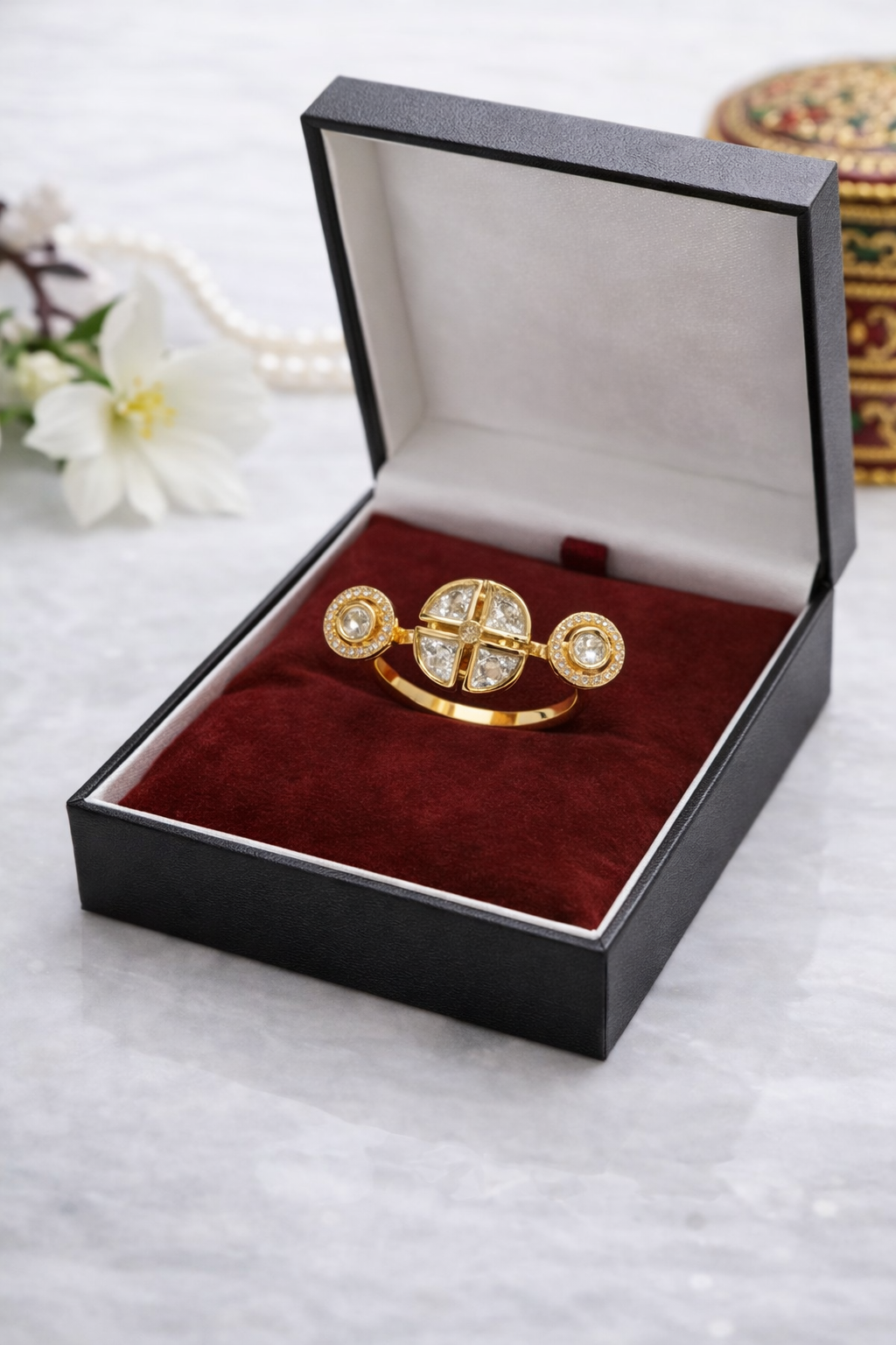 Traditional Rajwadi Gold Plated Brass Ring for women.
