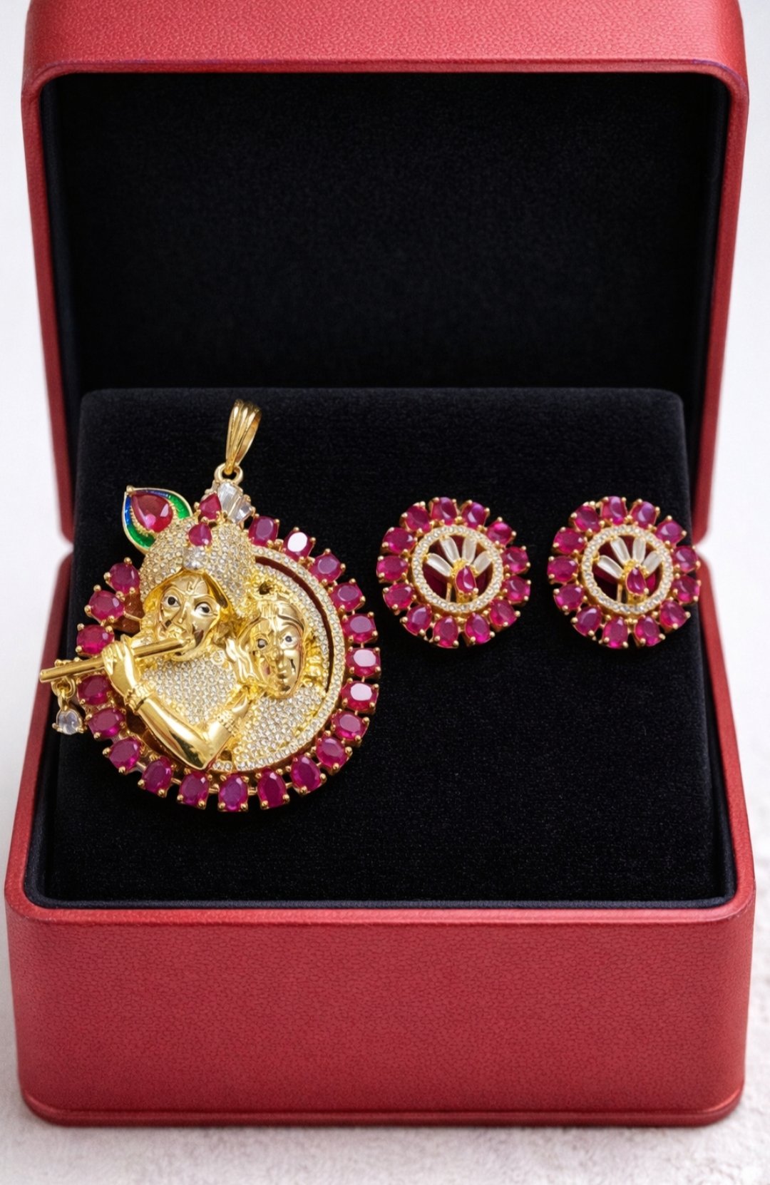 Radha Krishna Ruby AD Pendant Set with Earrings ✨❤️💎