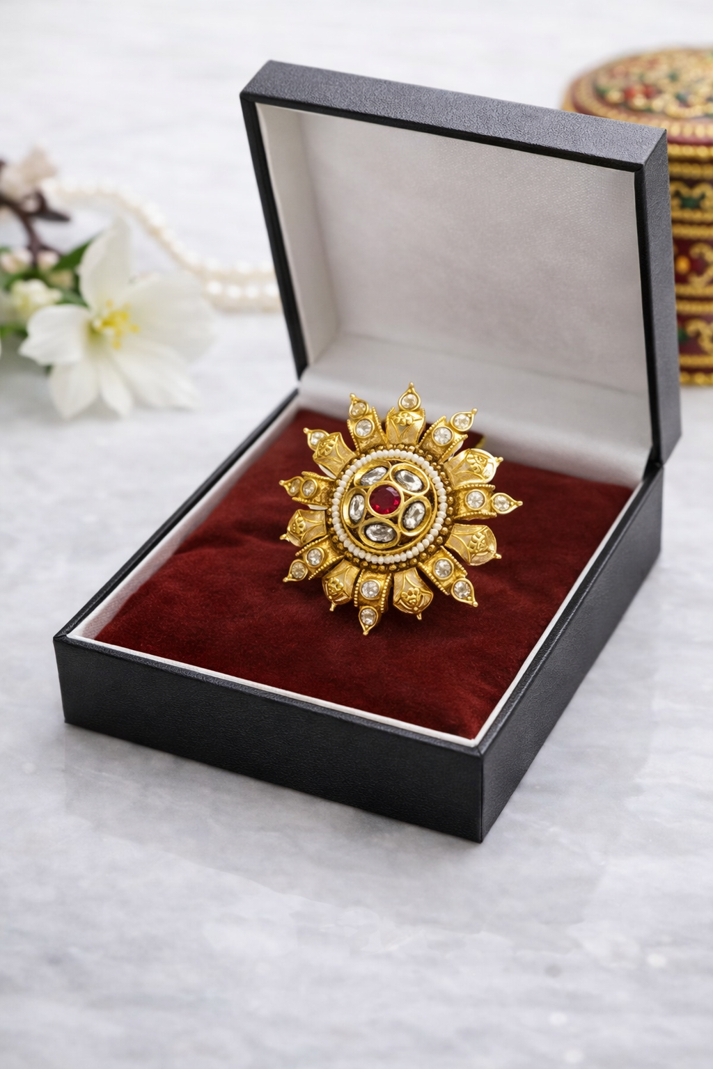 Traditional Rajwadi Gold Plated Brass Ring for women.