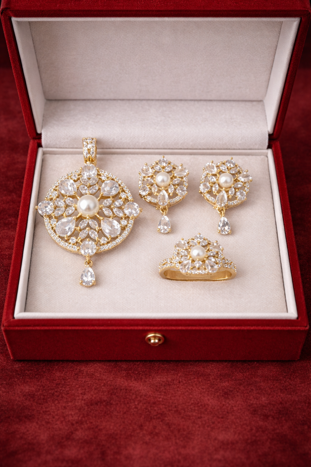 Royal Pearl Bloom Pendant Set with Ring Combo ✨