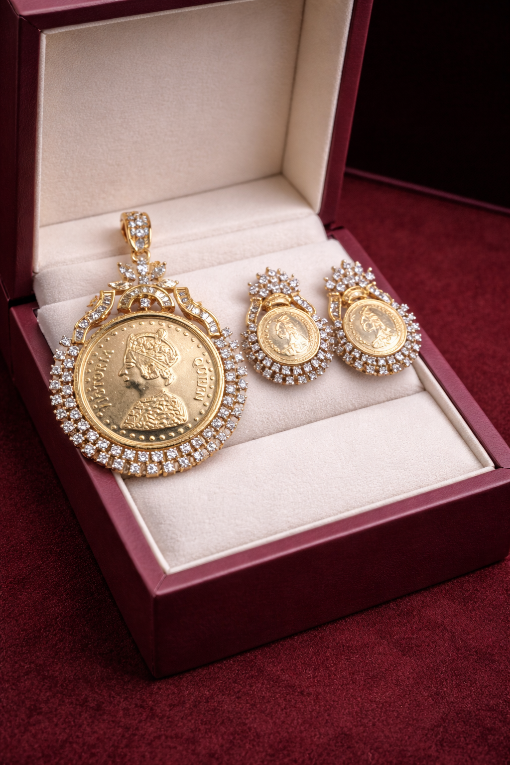 Royal Queen Coin AD Pendant Set with Earrings 👑✨💎