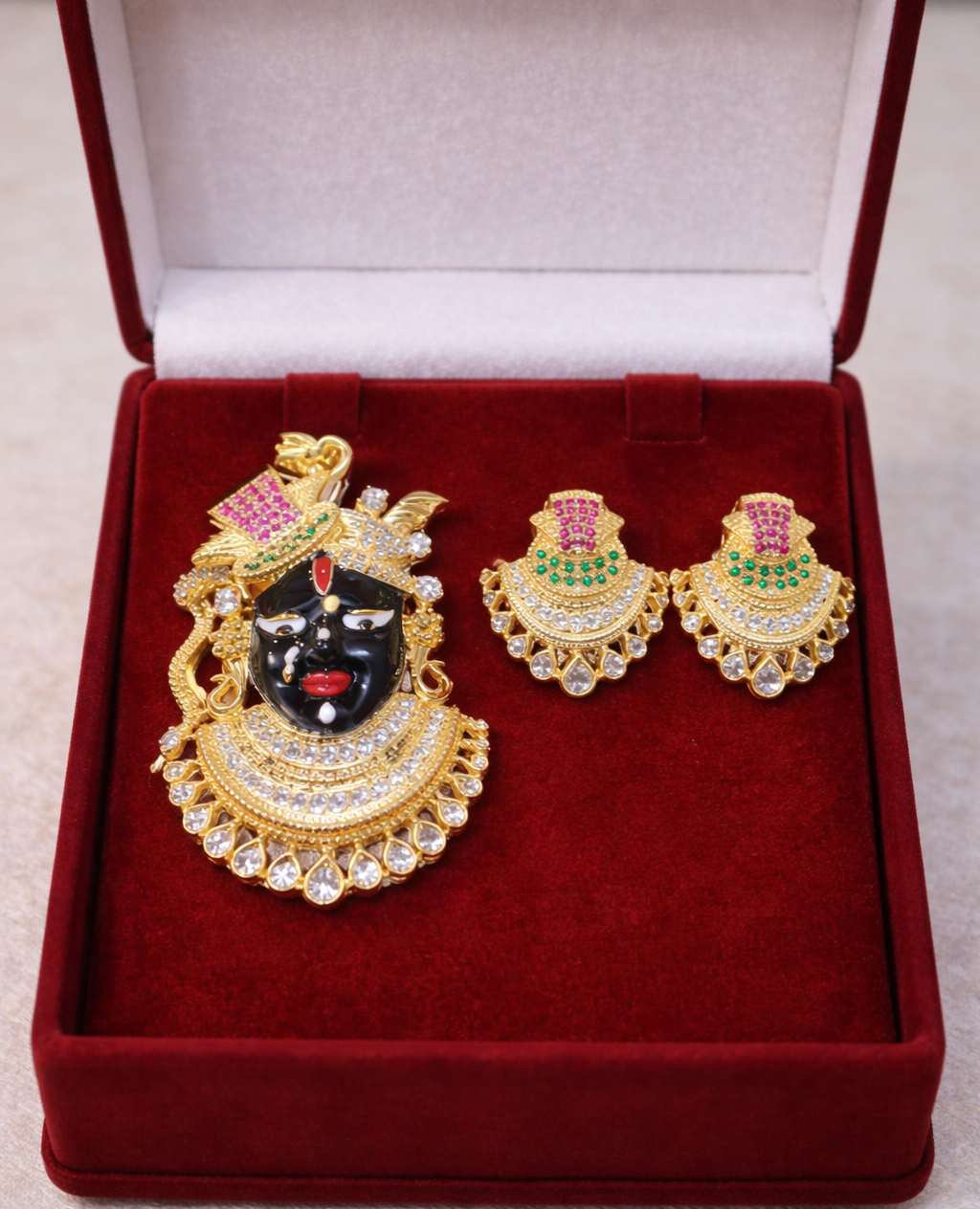 Shri Krishna Gold Diamond Designer Pendant Set.