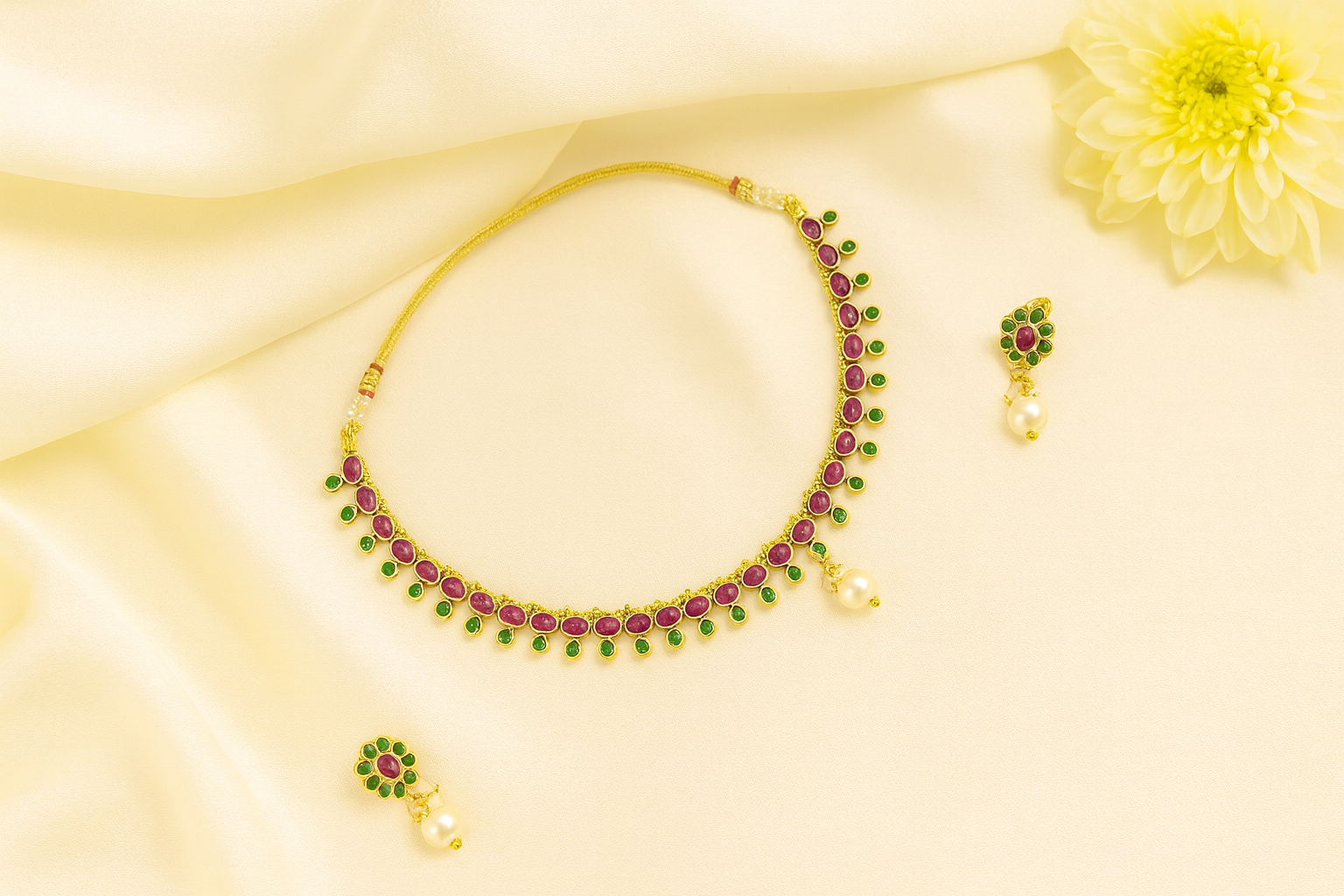 A stunning ruby diamond necklace crafted with premium stones, bringing elegance and royal charm to every look.