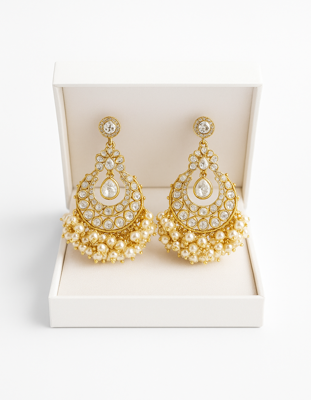 Lightweight and stylish Kundan earrings that enhance your natural grace.