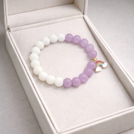 Pastel Purple & White Beaded Bracelet with Rainbow Charm 🌈